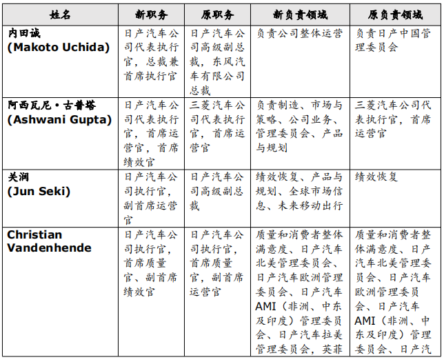 - 山内康裕(Yasuhiro Yamauchi)将辞去日产汽车公司代表执行官、代理总裁兼首席执行官、首席运营官的职务,继续担任日产汽车公司董事一职。