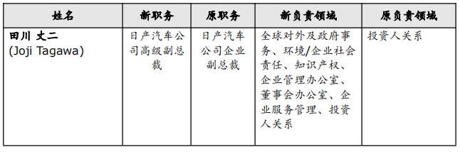 - 日产汽车公司执行官兼执行副总裁川口均(Hitoshi Kawaguchi)将离任。
