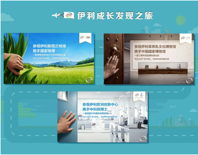 针对目标人群,将“参观伊利”平台升级打造成为伊利品牌独有的IP资源。在参观伊利位于荷兰的欧洲创新中心、新西兰工厂及当地牧场以及内蒙古的草原乳文化博物馆的同时,赋予消费者更多附加知识及成长价值。通过三场落地旅行、绑定世界级机构及平台,中科院、国家地理给予强背书,输出伊利的世界级品质概念,共同构建世界级品质的直观感受。将伊利比肩世界级品质的五大利益点融入其中,让消费者真正认知、认可并信赖伊利的“世界级品质”。