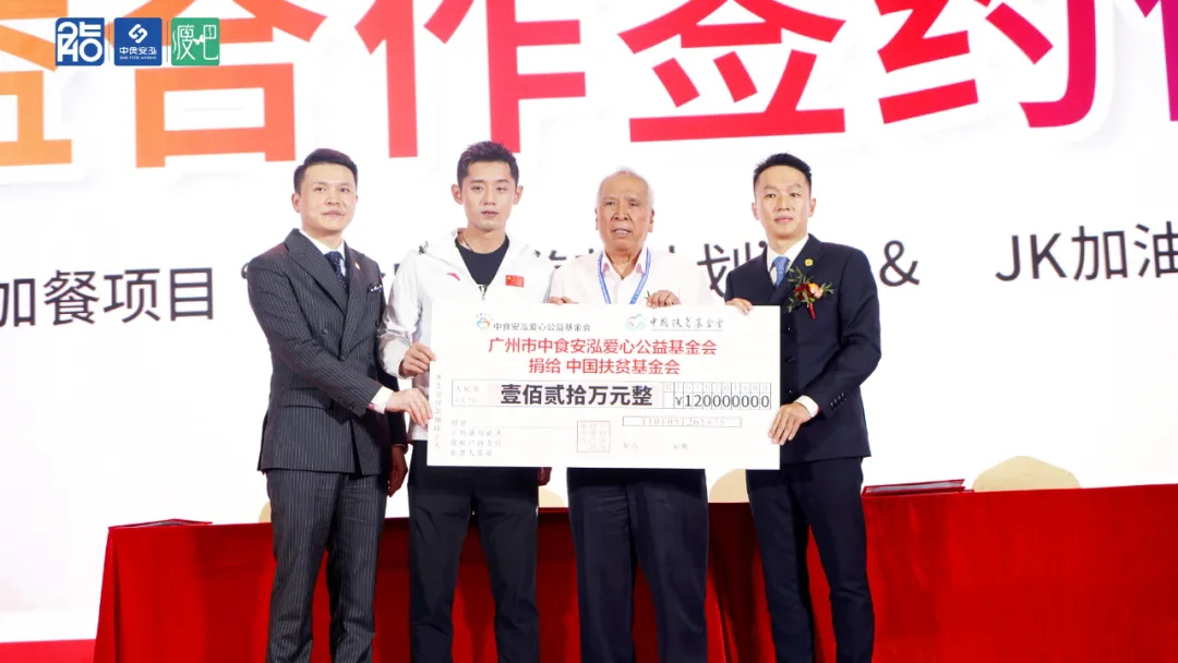 2020年9月,中食安泓爱心公益基金会与中国扶贫基金会达成公益合作,中食安泓爱心公益基金会捐赠人民币120万元,涵盖“爱加餐”和“JK加油计划”两大公益项目,希望提高乡村地区青少年与儿童的身体素质,有效促进城乡营养公平及教育公平,践行健康中国使命,守护儿童健康未来。