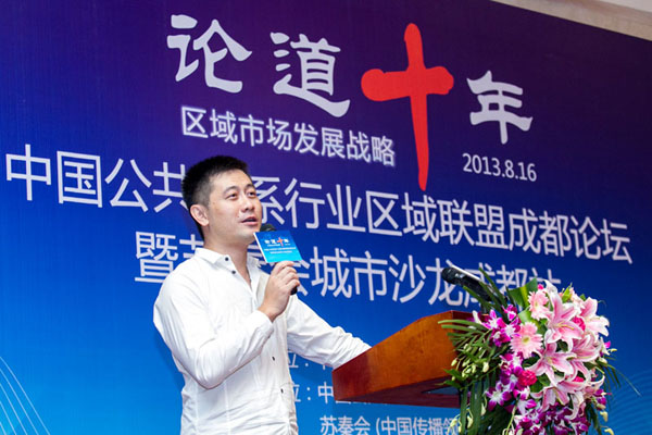 我爱公关网讯 8月16日,中国公关区域联盟成都论坛在成都九天国际大酒店成功举办,活动主题为“论道十年,区域市场发展战略”。联盟总顾问、5iPR创始人兼首席执行官陈向阳,联盟主席、世通利方董事长冯杰,蓝色光标传播集团总裁毛宇辉、山水文园金海湖投资集团营销总监李延昭和来自全国主要城市的20家TOP公关公司30多位主要负责人出席论坛活动,总结区域市场十年经验,展望未来十年发展战略,成都山水公关总经理徐浩主持了本次会议。
