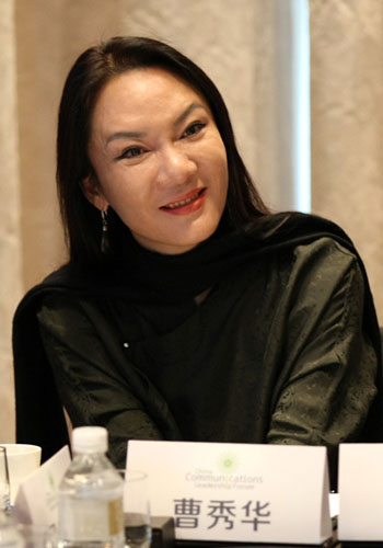 我爱公关网讯 11月30日下午,以“智·汇·传播”为主题的2013中国传播领袖论坛在北京康莱德酒店隆重举办,来自公关、广告、活动、互动、市场、文化、媒体等领域的200多位传播领袖和精英出席活动,围绕传播业的最新理念、最新技术和最新趋势做智慧碰撞。信诺传播董事长兼总裁曹秀华出席“整合营销新格局”圆桌高端对话并担纲嘉宾主持。