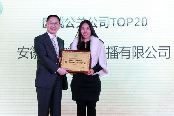 苏秦会创办人兼执行会长、联盟总顾问陈向阳为安徽蓝韵文化传播有限公司颁发“2013中国区域公关公司20强”奖牌。