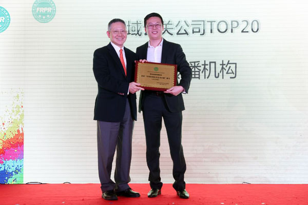 联盟顾问、互动通控股集团总裁邓广梼为青岛深度传播机构颁发“2013中国区域公关公司20强”奖牌。