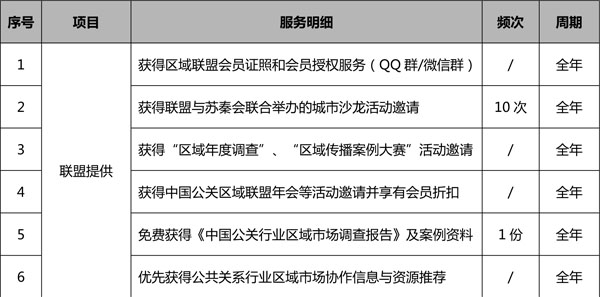 申请加入联盟的会员需符合以下资质:二三级城市提供公共关系服务的区域性公司;需拥有3年以上的运营历史,年营业收入1000万元人民币以上,人员规模25人以上;在所在区域内具有一定的影响力和品牌形象;