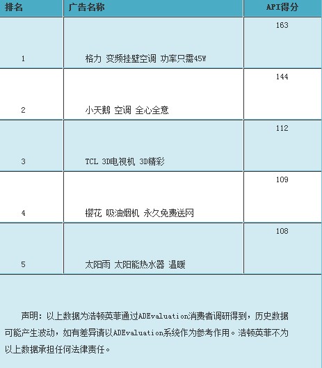 ADEvaluation-2012年3月家电类电视广告效果排行榜