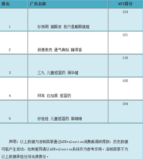 来自浩顿英菲ADEvaluation数据库的统计,医药保健类广告的行业整体排名一直比较靠后,3月份新广告的效果较以往有提升。有意思的是,上榜的五则广告,三则本土品牌齐心的选用娱乐明星代言,而另外两则国外品牌都没有使用明星。是否明星代言已然区分本土国外医药类品牌的标志。