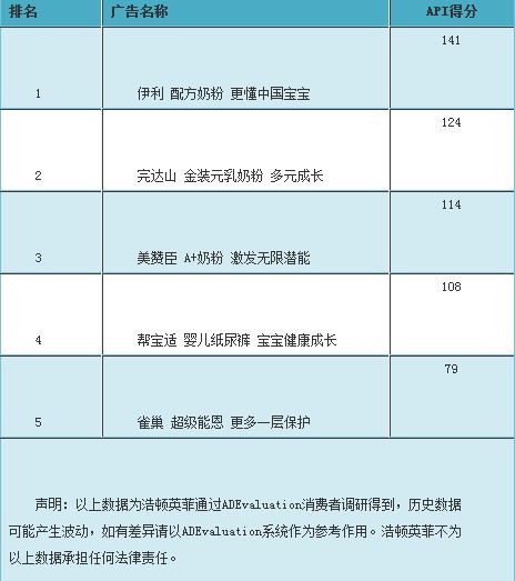 ADEvaluation-2012年3月婴幼儿产品类电视广告效果排行榜