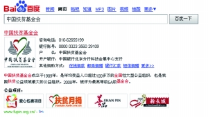 “壹基金、中国扶贫基金会”在百度搜索中的展现结果