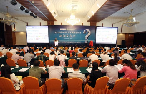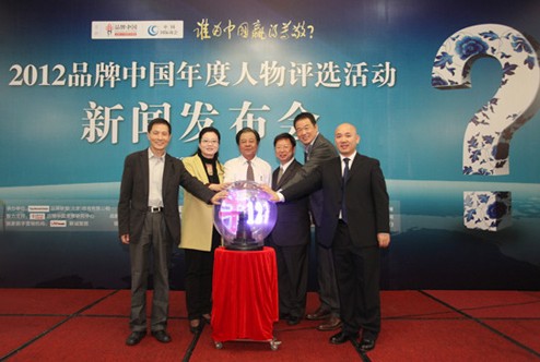 2012品牌中国年度人物评选活动新闻发布会及启动仪式在北京举行。品牌中国产业联盟主席艾丰,中国贸促会副会长、中国国际商会副会长于平,品牌中国产业联盟执行副主席、中国国际公关协会常务副会长郑砚农,2011品牌中国年度人物、中坤集团董事长黄怒波和依文企业集团总裁夏华共同启动了本年度品牌中国年度人物评选活动。