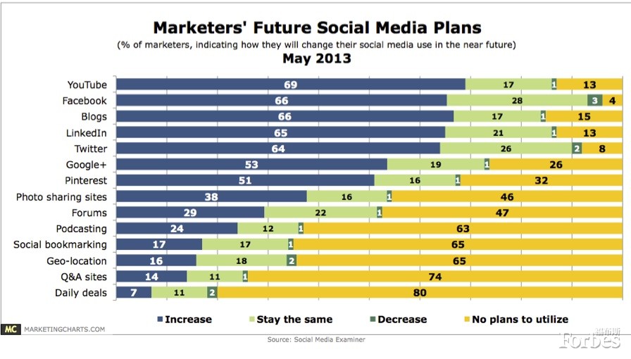 2.论坛(2011为24%,今年为16%)和Foursquare等地理位置服务(2011年为17%,今年为11%)也处于下滑中。