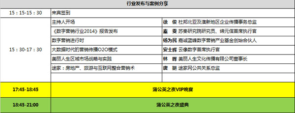 届时IBM副总裁兼大中华区首席市场官周忆女士、奥美公关亚太区总裁兼首席执行官柯颖德先生、凤凰网副总裁徐进先生将在大会发表主旨演讲,80位传播领袖分别在“行业标准新变化”、“数字营销新格局“、“社会责任新要求”和“跨界整合新平台”四个分会场进行高端圆桌对话,150位来自公关、广告、活动、互动、市场、文化、媒体领域的总监级传播精英将出席行业发布活动,就2014年传播行业的最新技术与成果展开智慧碰撞。