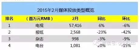 2月,电视媒体、电台媒体的广告投放均呈现出同比增长、环比下降的趋势,与本月广告投放总体市场趋势相吻合。电视媒体较为稳定,同比增长、环比下降均属小幅变动。电台媒体的变化幅度较大,同比增长20%,环比下降15%。平面媒体报纸和杂志本月同环比双下滑,报纸媒体下降幅度较大,同比下降23%,环比下降42%,杂志媒体同比下降3%,环比下降9%。