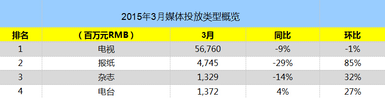 注:所有广告投放金额均以媒体刊例价计算,数据截止2015年5月11日