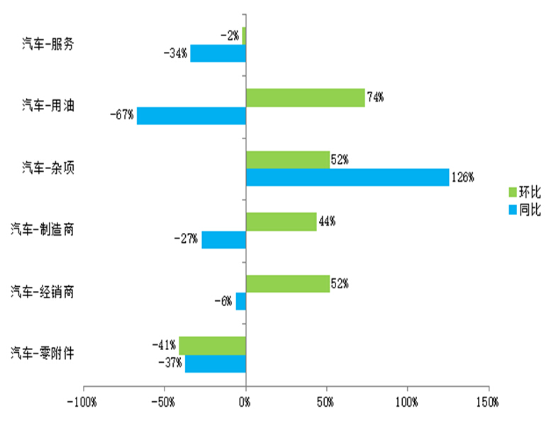 2015年3月份汽车及有关产品行业细分品类同比环比变动情况
