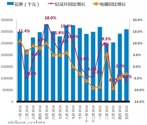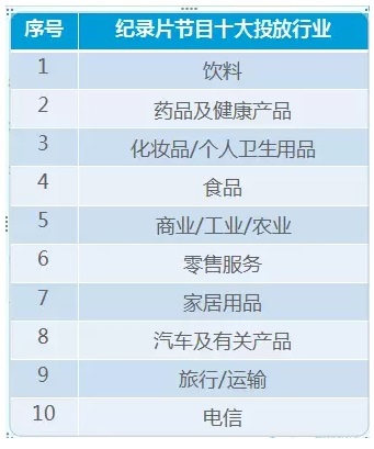纪录片节目广告投放增长高于整体电视广告:在目前整个电视广告行业不是特别乐观的情况下,纪录片的广告呈现了“逆增长”,出现了很多饮料类、药品类、化妆品、家居等广告类型。