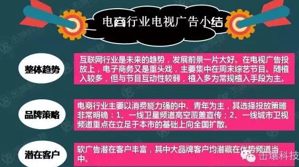 随着互联网的快速发展,通过网络消费已成为人们的生活方式,电子商务也达到前所未有高度,作为新兴行业,通过电视媒体快速塑造品牌,便成为电商品牌发展壮大的捷径,因此电商广告业的投放也水涨船高。