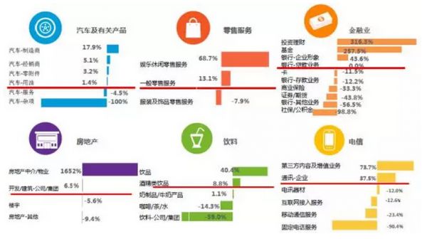 在细分小类中,房地产中介/物业、投资理财和基金迅猛发展,其他类别中第三方内容及增值业务和娱乐休闲零售服务小类广告投放同比增长均超过50%。