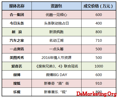 今年来自合一集团、今日头条、新浪、汽车之家、一点资讯、美图秀秀、爱奇艺、微博、搜狐、乐视共10家媒体合作伙伴的高管带来自家媒体2015年度最具价值的资源包进行拍卖,最终,竞标会达成总成交额6820万元,途牛旅游网、美的集团、银天下、沃尔沃、本来生活网、修正药业、洋码头、习酒等品牌主拍得这些资源,成为本次拍卖的赢家。