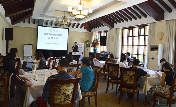 我爱公关网讯 6月25日下午,苏秦学院移动营销高级研修班首期在北京阳光四季会所结业,来自北京、上海、深圳、重庆、福州等地的20位传播经理人员参加了此次培训。Vcont创始人兼CEO易广涛、白鹭时代联合创始人张翔、蓝色光标客户总监刘海涛、白鹭时代高级市场总监温向东、麦片科技COO伞明等5位资深讲师,在为期2天的强化训练中,围绕“H5营销大赛,玩转H5”这一主题,分别讲授了H5应用发展、H5场景应用、H5创意设计、H5营销策略以及H5营销大赛五门核心课程,分享了大量基于H5应用技术的营销案例,通过小组讨论、案例研究和模拟练习等形式,激发了更多思考和讨论,赢得了学员们的一致好评。