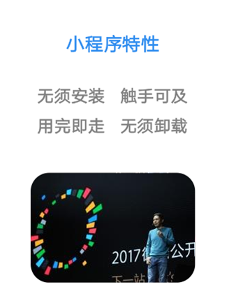 在会议现场,由飞燕小程序、TalkingData、WeMedia、BiaNews、亿欧联合出品的「2017年小程序发展状况报告」出炉,这也是小程序上线半年后,国内首个针对小程序进行分析调研的行业报告。