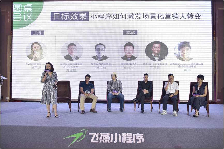 除此之外,大会的另一个亮点是圆桌会议环节中,CMO训练营创始人班丽婵、易简集团品牌事业群合伙人总经理劳维维、聚橙网市场副总裁潘志鹏、派瑞威行CEO覃邦全、腾讯云行业方案总经理郑立鹏、华彬集团果倍爽品牌全国行销副部长董琳就“小程序如何激发场景化营销大转变”这个话题进行了讨论,为资深营销人带来全新的思路和碰撞,引起了热烈关注。
