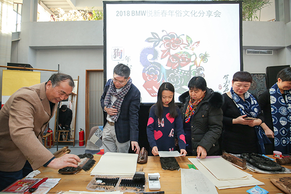 嘉宾们通过聆听大师的讲述,在大师的指导下动手制作年画,请大师为自己挑选的年画留下亲笔签名,与大师合影留念,全场沉浸在融融的新春贺年和文化体验的氛围中,感谢BMW为我们创造了与非遗传人和传统文化碰撞的机会,让2018有了更多的创意和梦想空间。