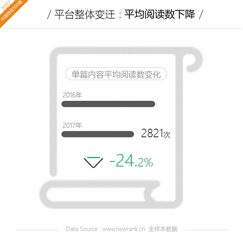1. 2017年微信公众平台平均阅读数下降24.1%,优胜劣汰愈发明显;