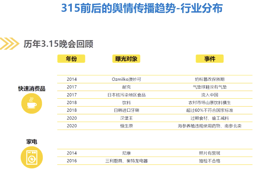从时间维度看315前后的舆情传播趋势,前后1-2个月就要开始做准备工作,把最有可能出现的场景做预案。