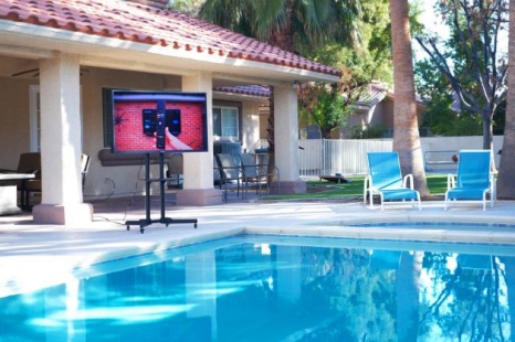 而55''Pool pro 4K户外超清电视,是专为后院,凉亭,池畔设计,它具有2000尼特的亮度和自适应亮度调节,即使在阳光下也能确保清晰的可视性。拥有IP55的防水等级,可以承受各种防水环境。此外,它还集成了谷歌助理和亚马逊Alexa,能够享受免提控制和无缝的智能体验,提升你的户外娱乐感受。