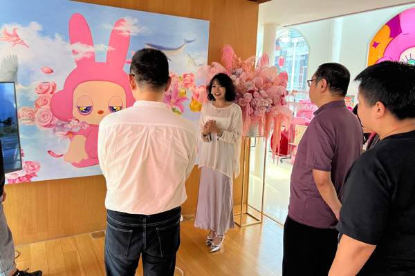 首先,R+Production 策展人刘格灵作为场地方引导大家参观了隐美术馆及仙想想IP展,介绍了R+Production公司以当代艺术为核心竞争力,与不同艺术空间、艺术机构和商业跨界合作,分享了一些策展案例,如2002年8月在今日美术馆开幕的展览,以及与奥迪品牌合作的共创活动,英国和纽约艺术家在中国广州K11艺术中心的首展等。