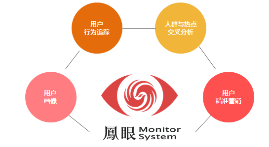 用户平台:国内首个实时监测基于新闻热点/事件的用户数据平台。大家只知道二郎神有千里眼,殊不知其实凤凰网还有个“凤眼”。凤凰网研发的“凤眼”是一个别具特色的用户平台,通过扫描“用户画像”,能够对用户进行“行为追踪”,并通过人物与热点进行交叉分析,从而形成用户的精准营销。