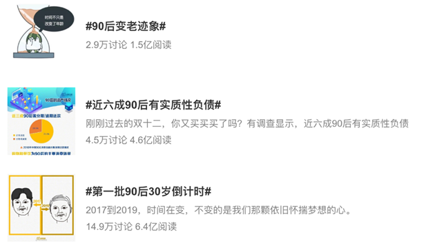 谈及“90后”,很多人会想到“潮流”、“宅”、“叛逆”、“自我”等标签,不少90后也喜欢戏称自己“还是个宝宝”。从“90后李宁”,到“我不耐烦,我要的现在就要”,从“90后新生代”到“玩客”计划,90后一直处于各大品牌营销的风口浪尖。随着第一批90后即将步入30岁,围绕他们的成年焦虑,再次引发了社会热议,“精致穷”、“90后变老迹象”等话题,也一再喜提新浪热搜。