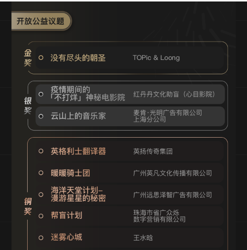 48支获奖作品近期将陆续进入投放环节,真正发挥公益效能。通过微信“搜一搜”功能搜索“创益人”,随时了解大赛进程,关注“创益”进展。